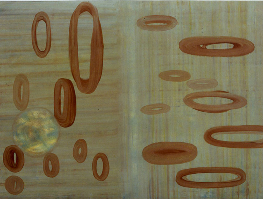 | aus der Serie "Knoten, Kreise, gezählte Tage", Acryl/Papier, 50 x 70 cm | |