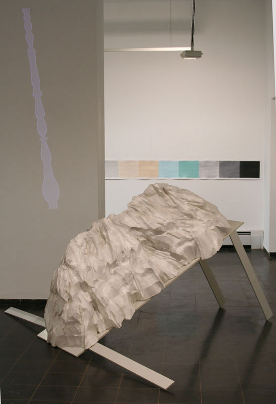 stehen. Diese schiefen Ebenen werden in dem langgezogenen Ausstellungsraum