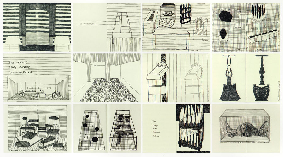 Assoziationen. The scetchbooks are directly connected my installation work. They comprise researches, plans and assciations. |