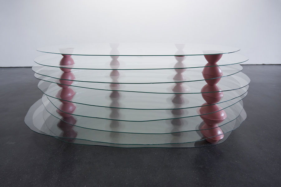 | Felder (kongruent), 2013, Silikon, Glas, 50 x 120 x 90 cm / Fields (congruent), 2013, silicone, glass, 20'' x 47'' x 35'' |