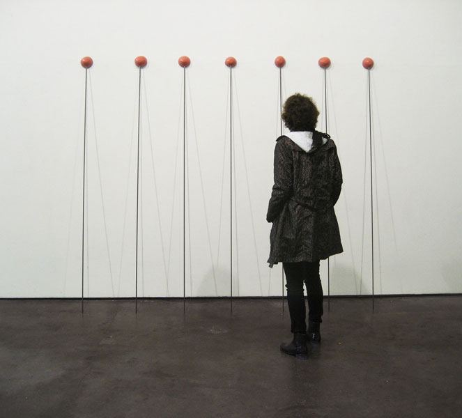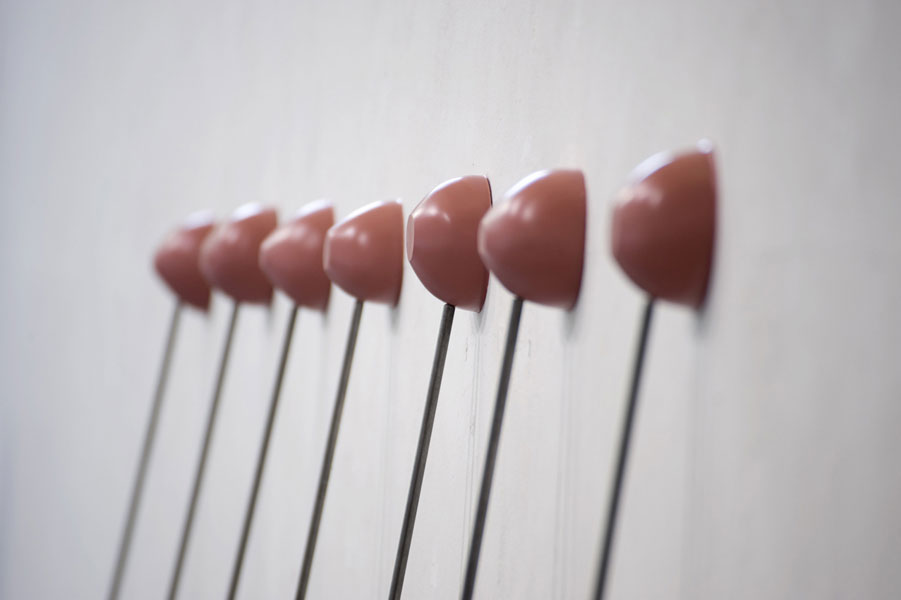 | Points (stehend), 2013, Silikon, Stahl, Höhe 210cm / Points (being upright), 2013, silicone, steel, hight 83'' |