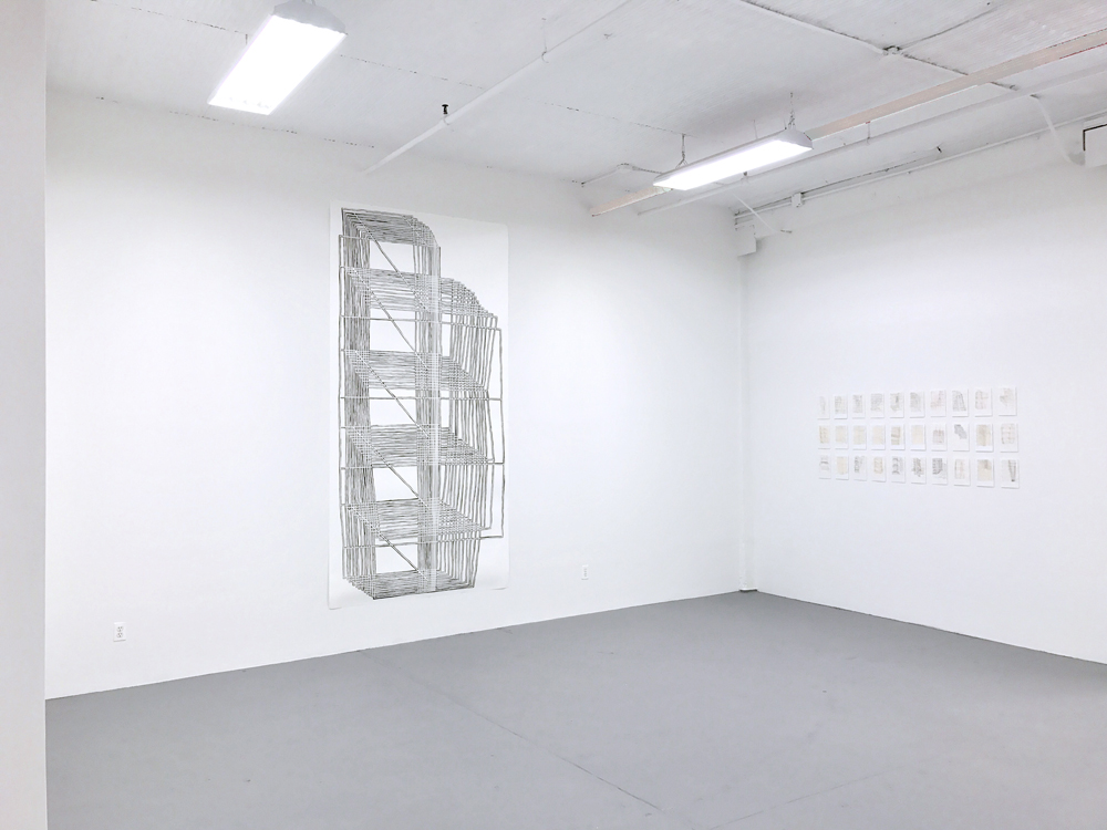 Architecture related Sketches New York City (four pieces out of a 70 parts series), 2016, wallpaint and ink on paper, each 8 x 6 inches |
