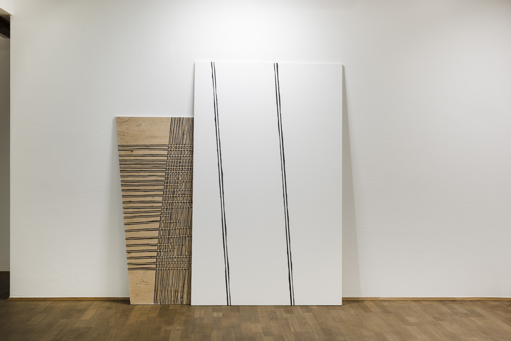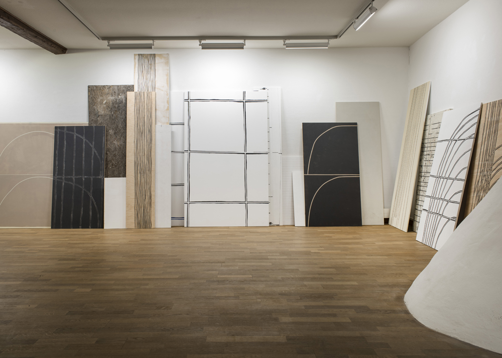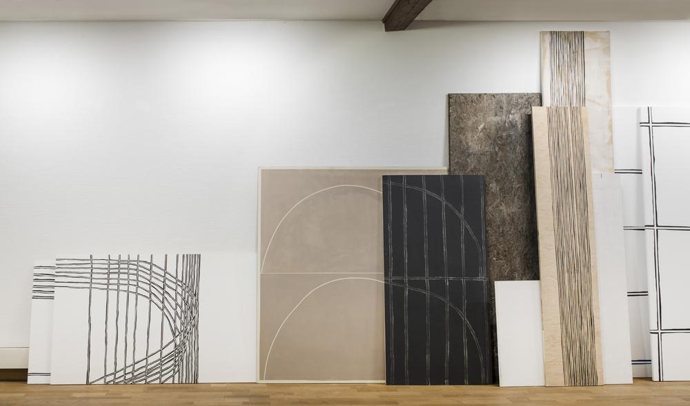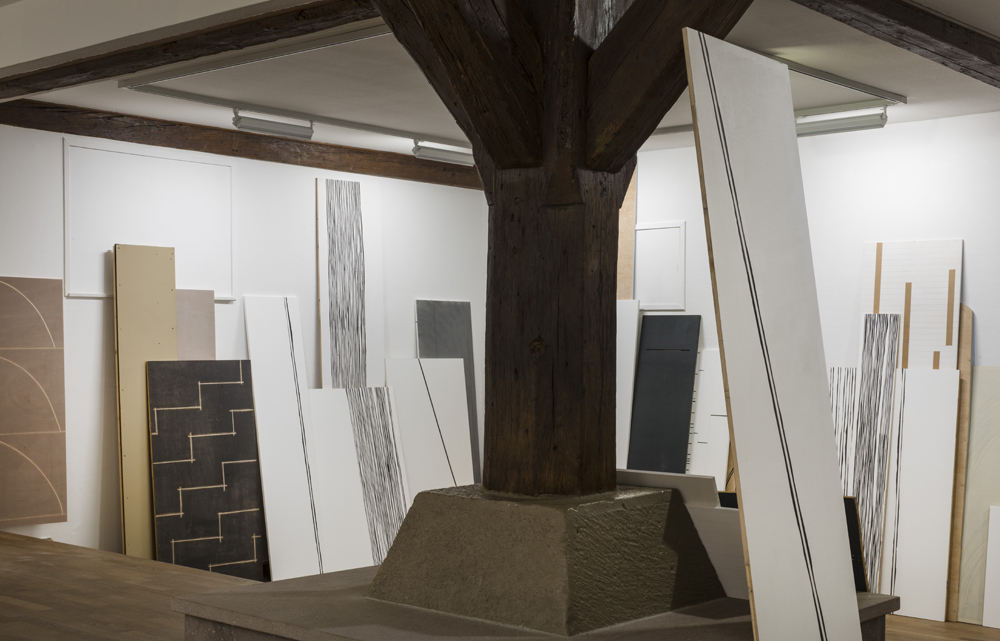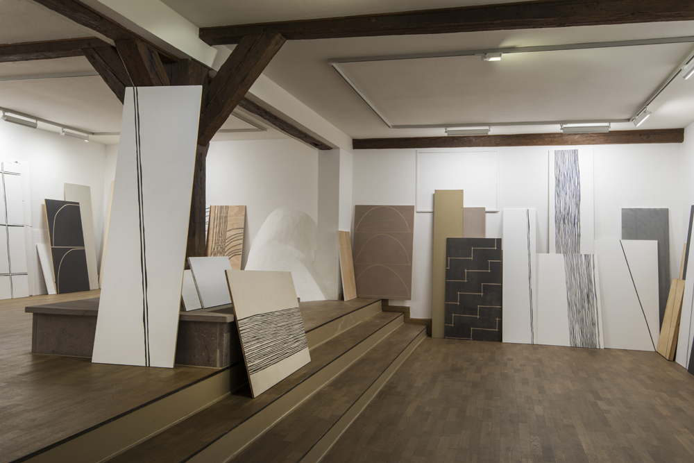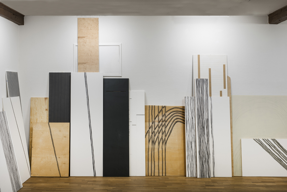 2018, Installation von 50 Holzplatten, Acryl auf Holz / installation of 50 plywood boards, acrylic on wood