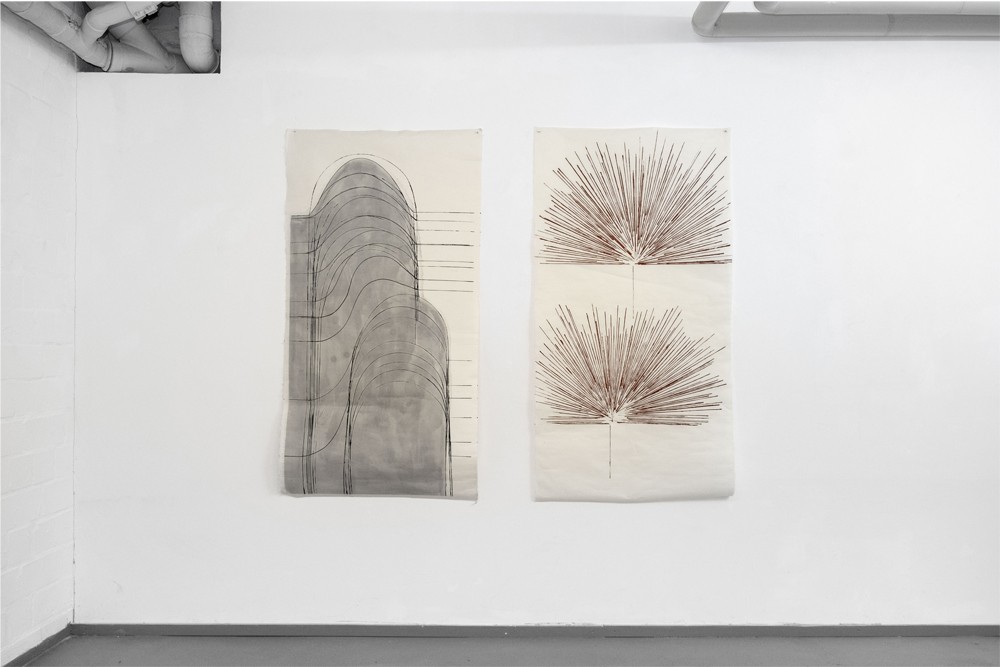 part of the series Signs of Space, 2019-2020, Acrylic on Hanji, each 76 x 143 cm