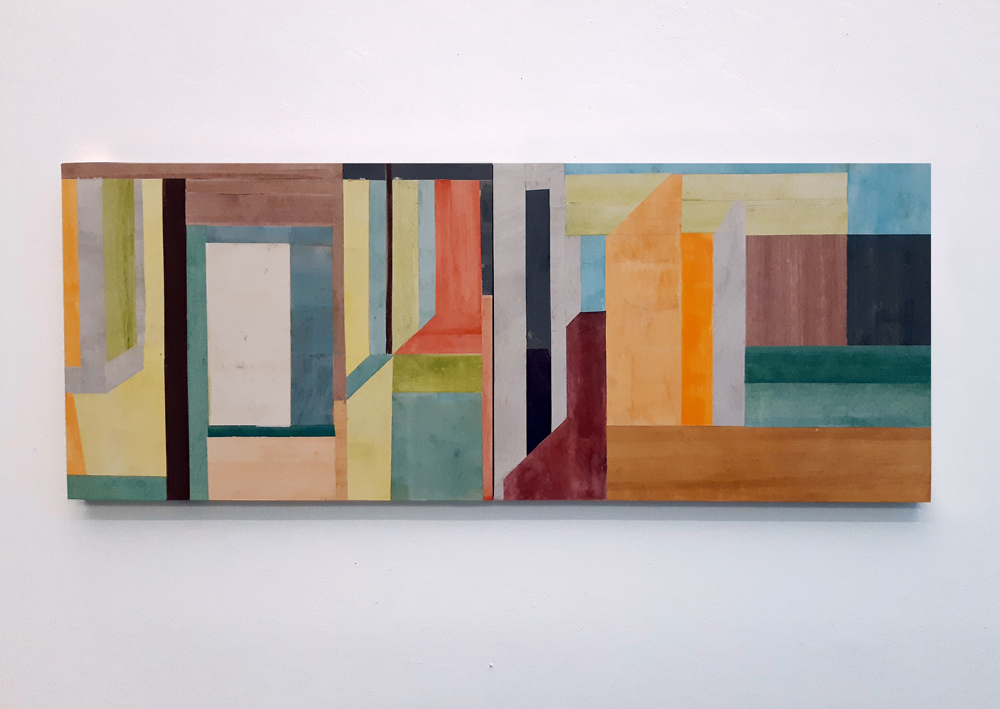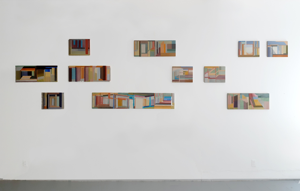 | Met Shacks (Detail), 2024, Gouache on Hanji, Collage on Panel, each 11x14" / Tusche und Acryl auf Hanji Papier, Collage auf Holzpaneele, je 28x36cm | |
